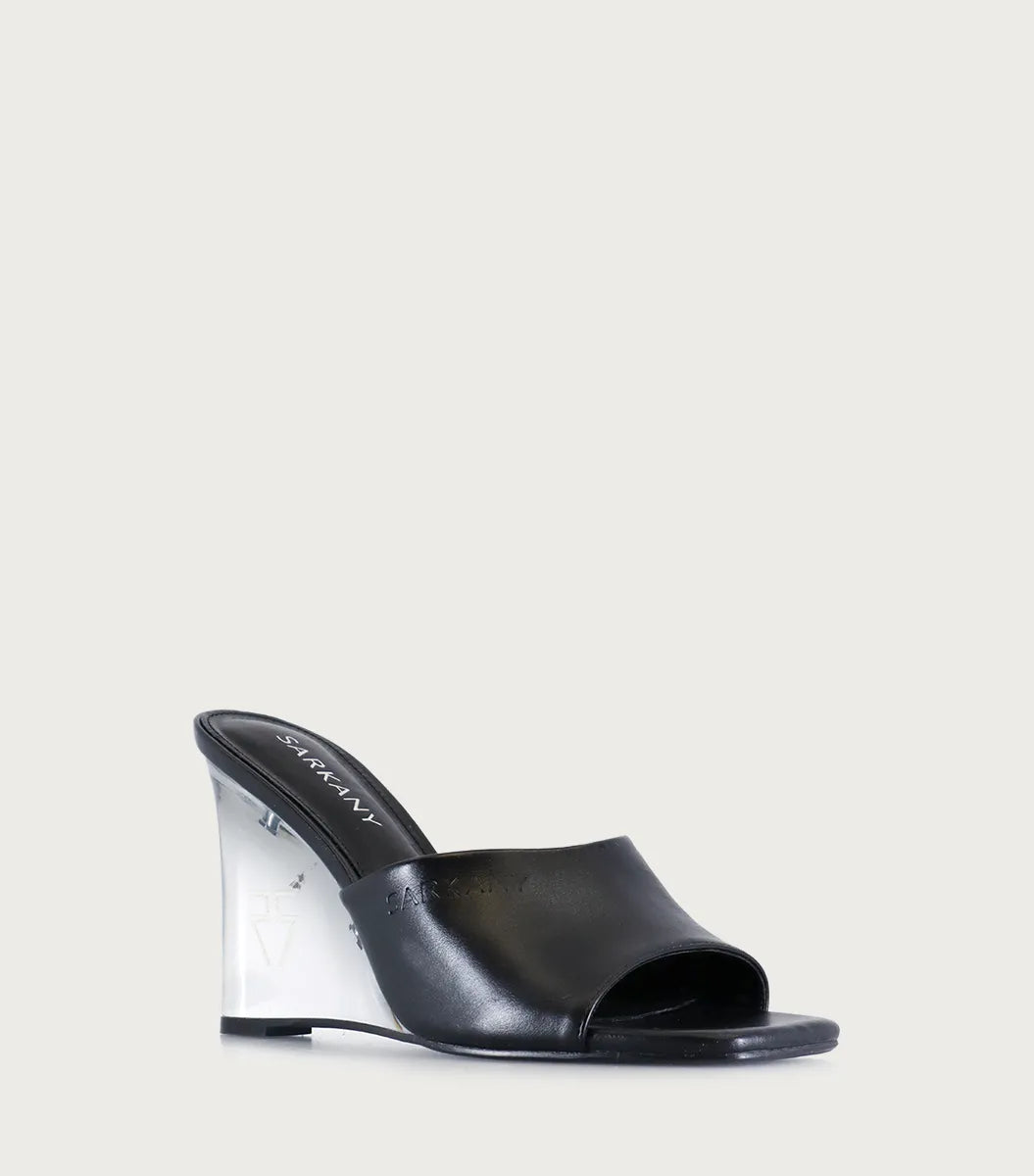 Sandalia Narda negro en fibras animal friendly, con logo y forrería en fibras animal friendly. Taco acrílico con logo grabado a láser y suelín de goma para máxima estabilidad. Altura del taco: 9 cm. Perfecto para quienes buscan un calzado cómodoy moderno Cuidados:No mojar, no lavar, evitar fuertes roces ya que se puede desgastar material y original o dañar los apliques.